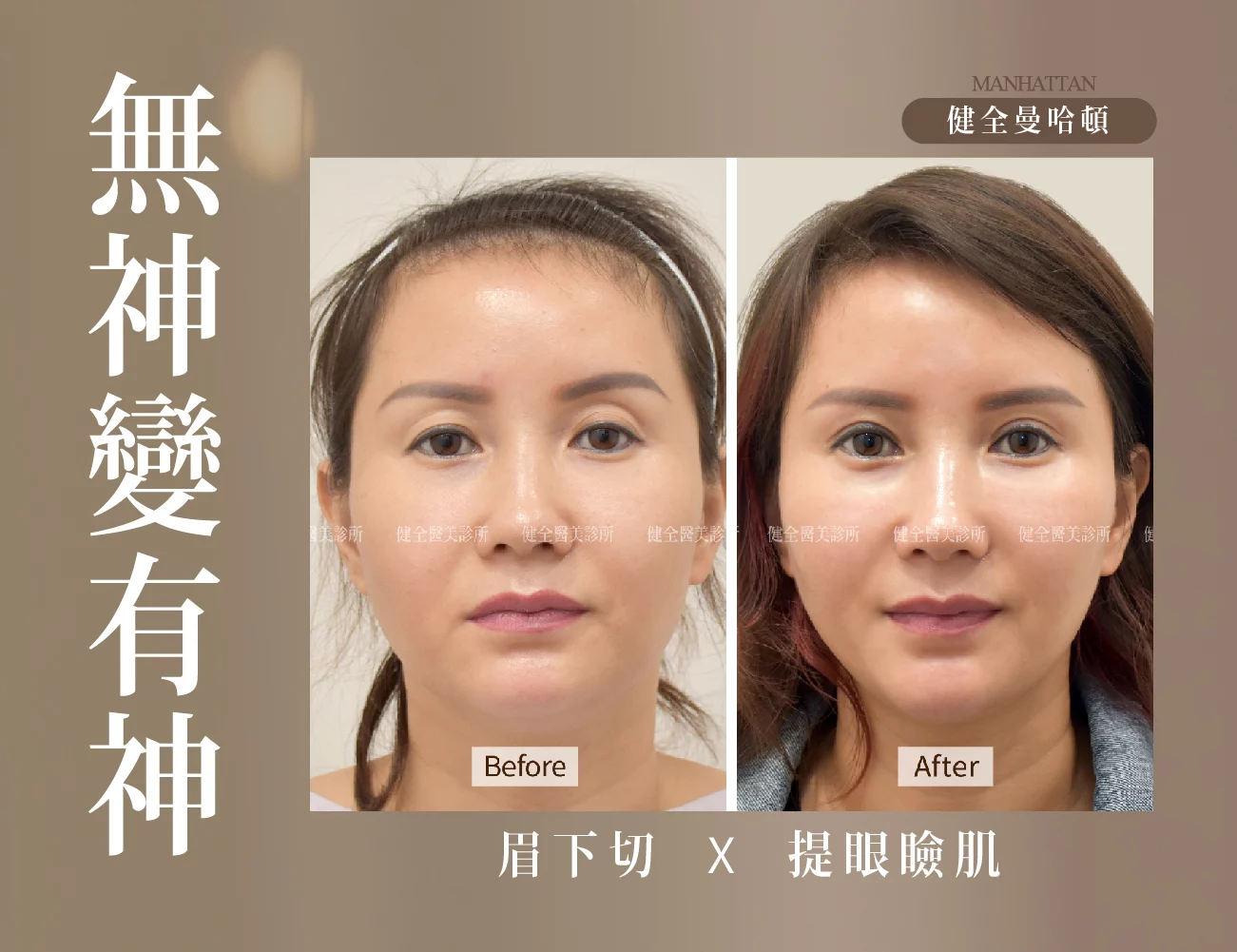 當眼皮鬆弛時,一般聯想到的是做上眼瞼手術,但如果想在不改變原有雙眼皮線條,僅想提升鬆弛眼皮時,可以嘗試接受眉切手術。此手術屬於一個較短恢復期的治療,對於眼皮拉提的效果顯著,特別是眼睛外側下垂明顯者,在切眉的同時還可利用該切口行上眼瞼脂肪摘除,改善臃腫的上眼瞼並加寬眼褶,還可以達到改善魚尾紋的效果。